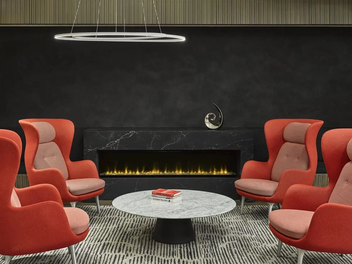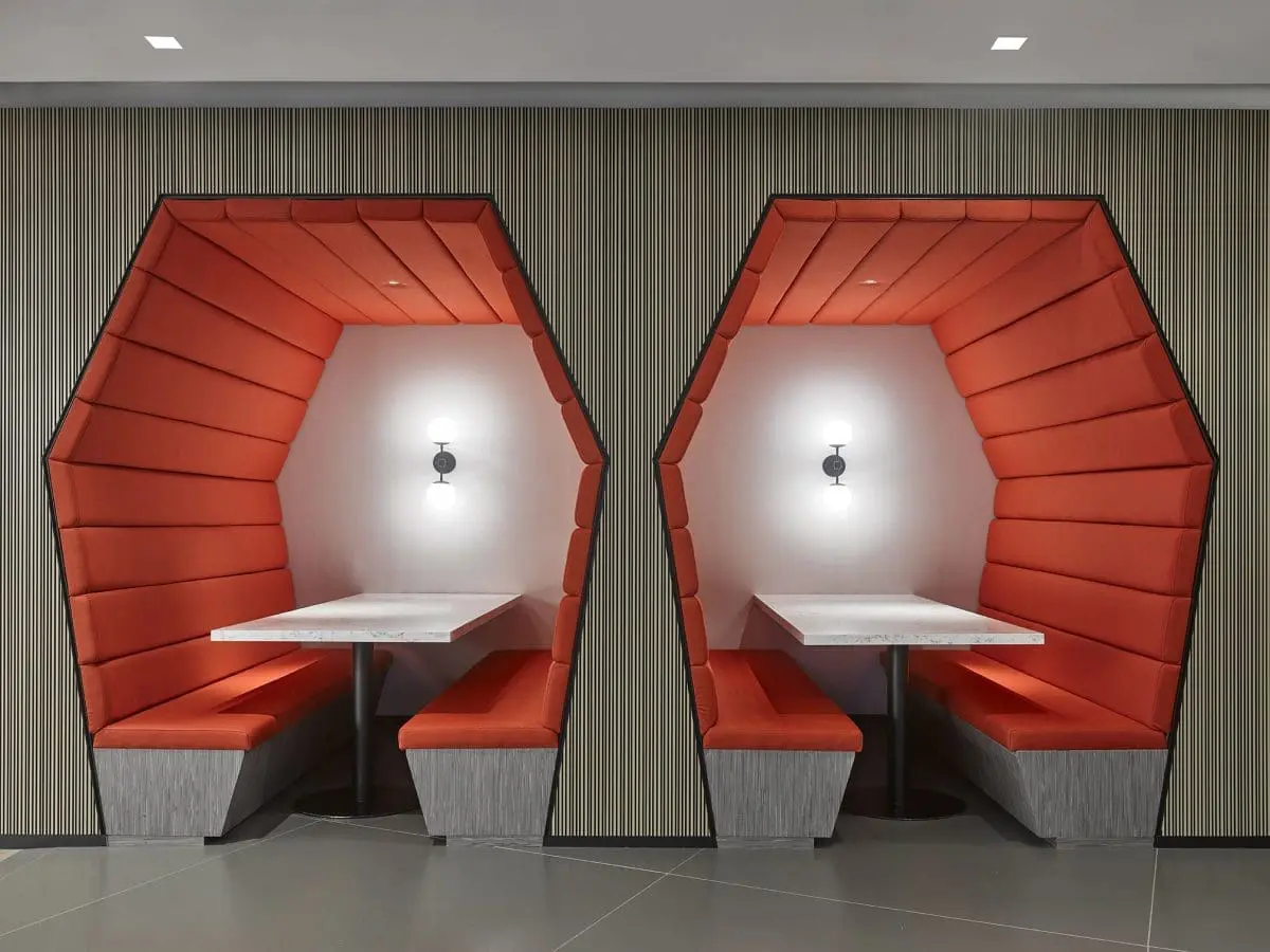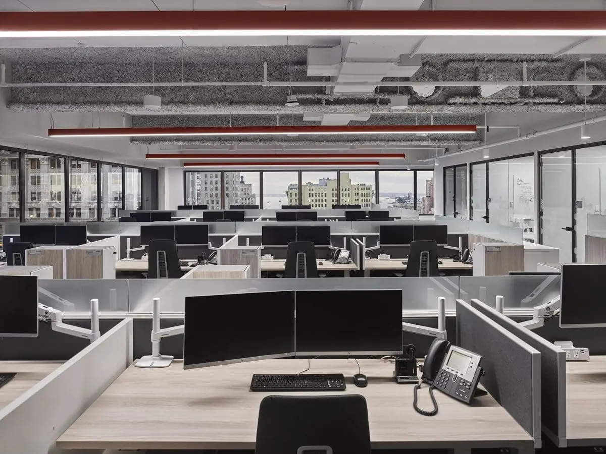 Built in four phases, this unique office fit-out was designed to promote employee engagement and collaboration. Spanning across 6 floors, the re-envisioned space boasts an array of amenities, including a state-of-the-art conference center, training facilities, strategically placed lounge areas and pantries on each floor, and seamlessly integrated open office workstations. StarSilent acoustic ceilings and custom lighting placed throughout the floors adds a contemporary touch to the space.
