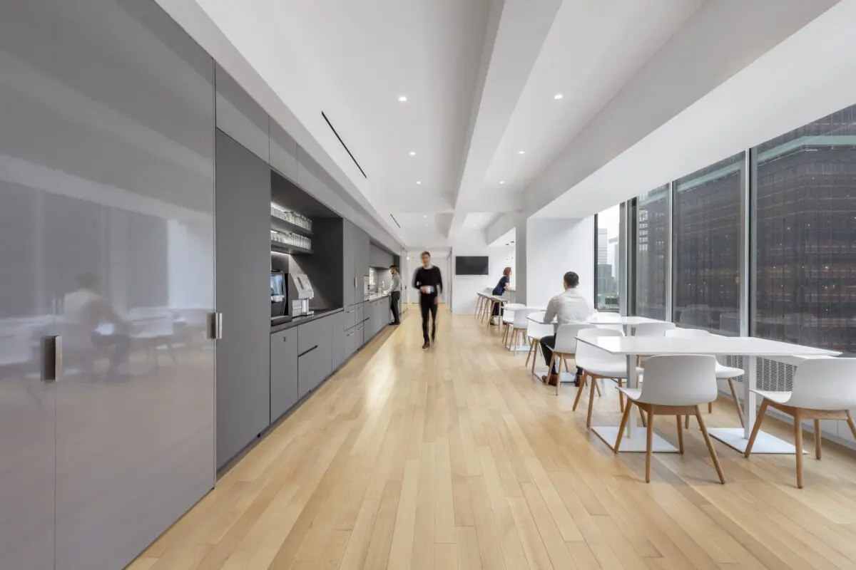 The new amenity-rich HQ was designed to be timeless and flexible, properly reflecting the firm’s identity and values. Technology is integrated throughout the entire office with lighting controls, sound masking, HI definition screens and A/V conferencing tools. To express the concept of transparency, glass front perimeter offices and conference rooms invite natural light while delivering Park Avenue views.