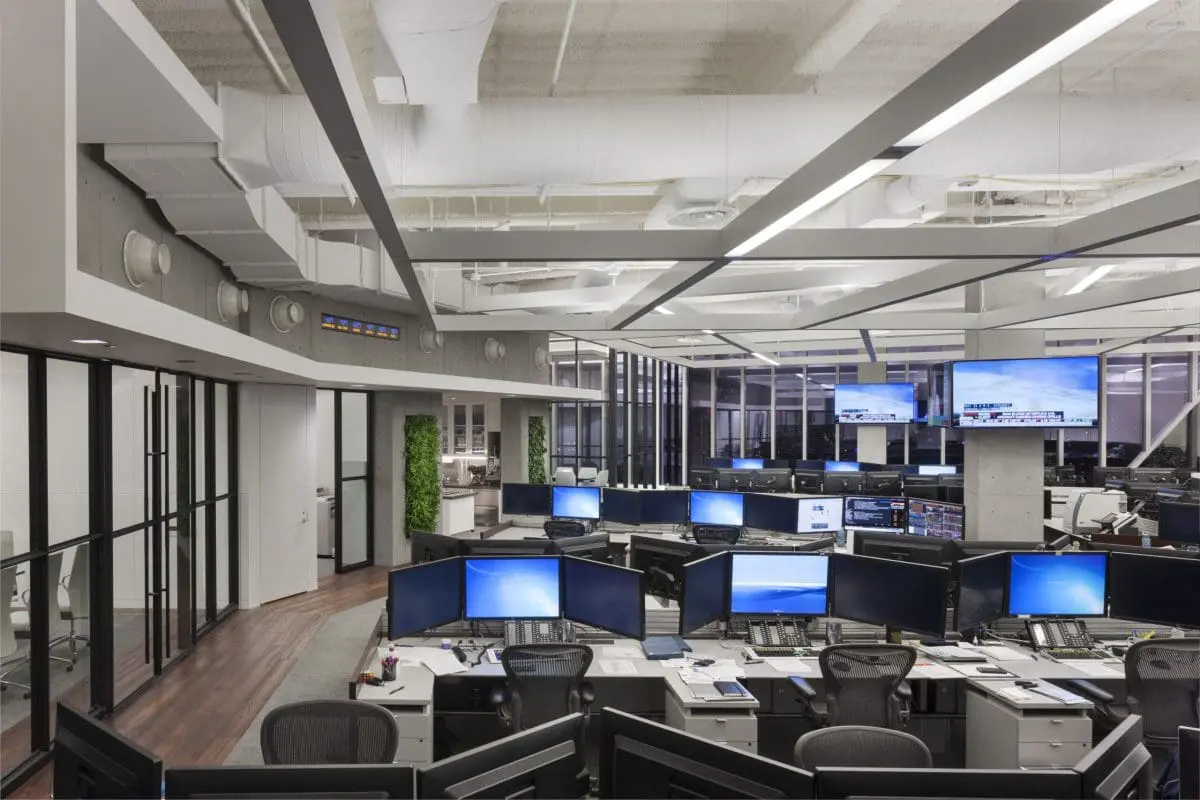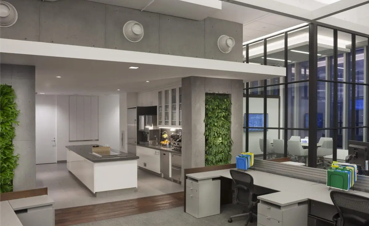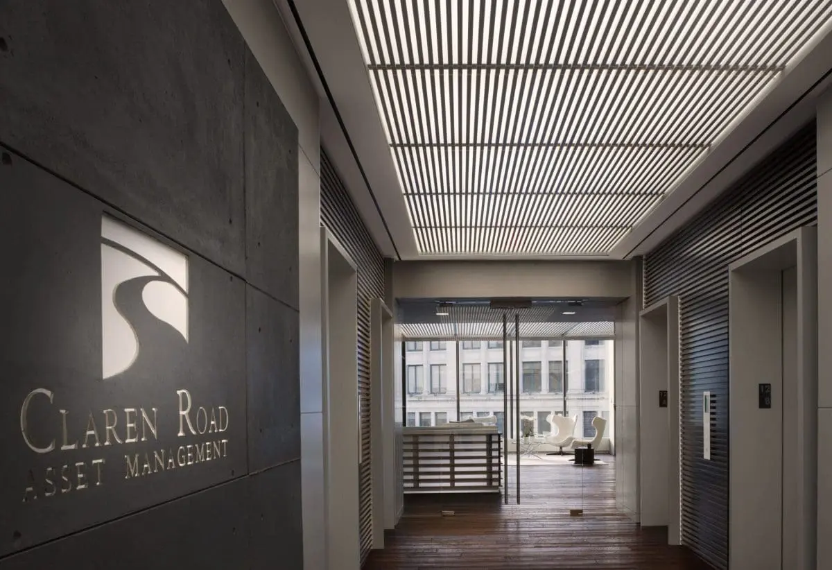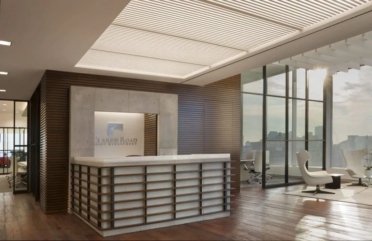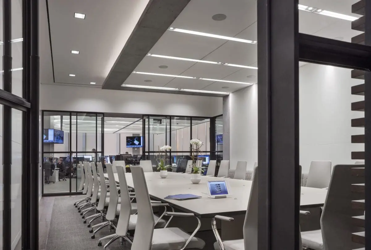 This 25,000 square foot office space for private equity firm was designed with a fresh, airy feel inspired by Tribeca lofts. Throughout the space, you’ll find custom millwork adding a unique touch which elevates the space. The office features a trading floor, glass paneled conference rooms and offers views of the bustling New York City skyline. With its clean design aesthetic, this space embodies both functionality and elegance.
