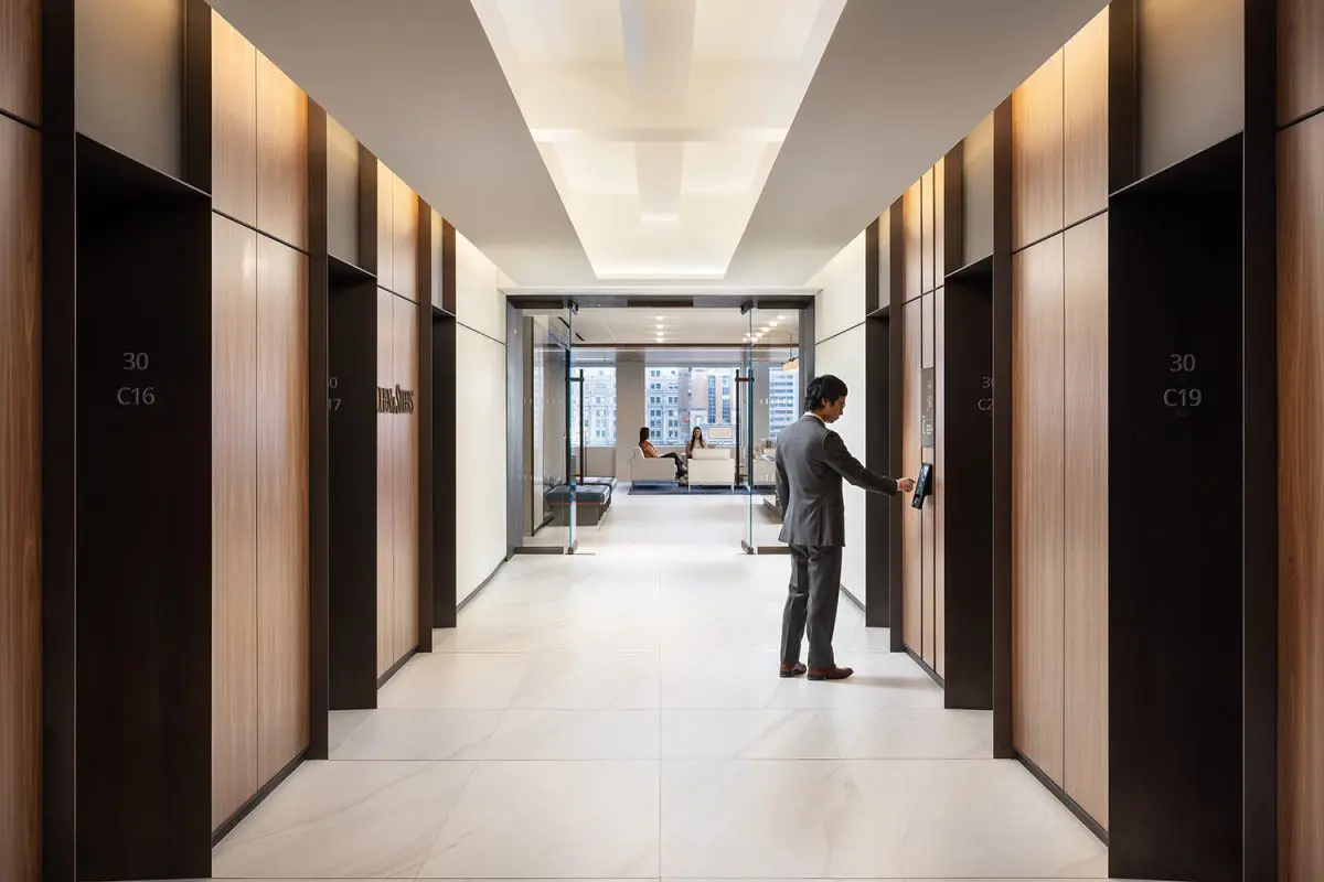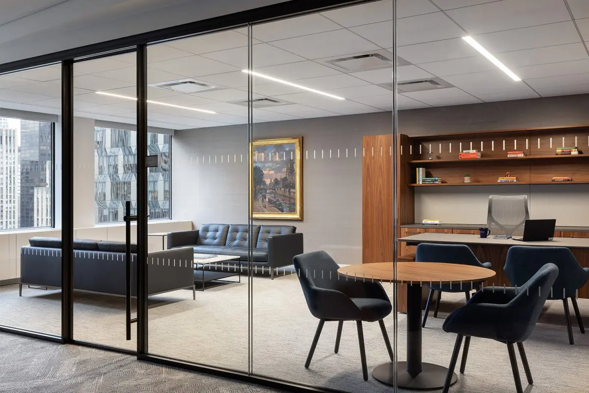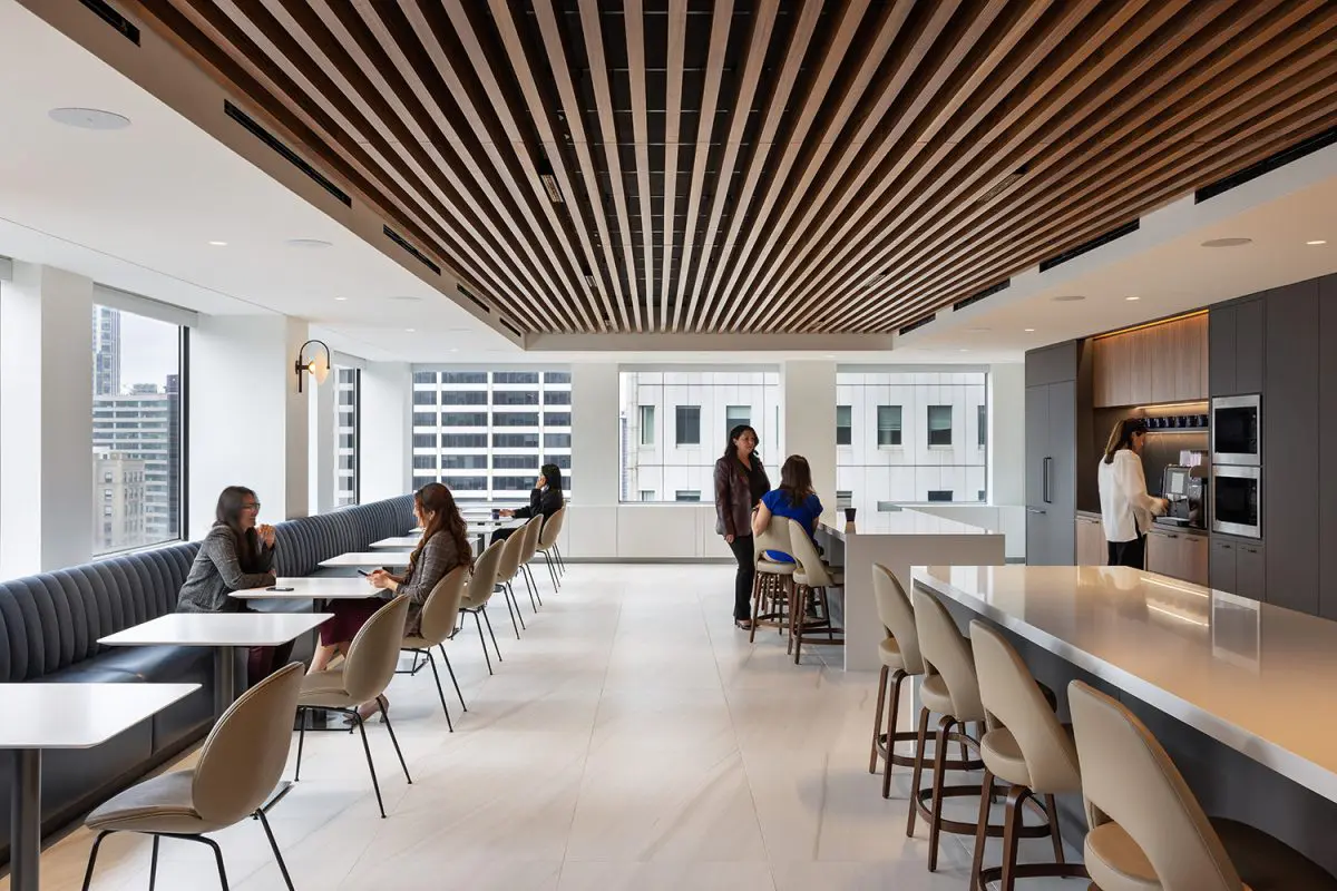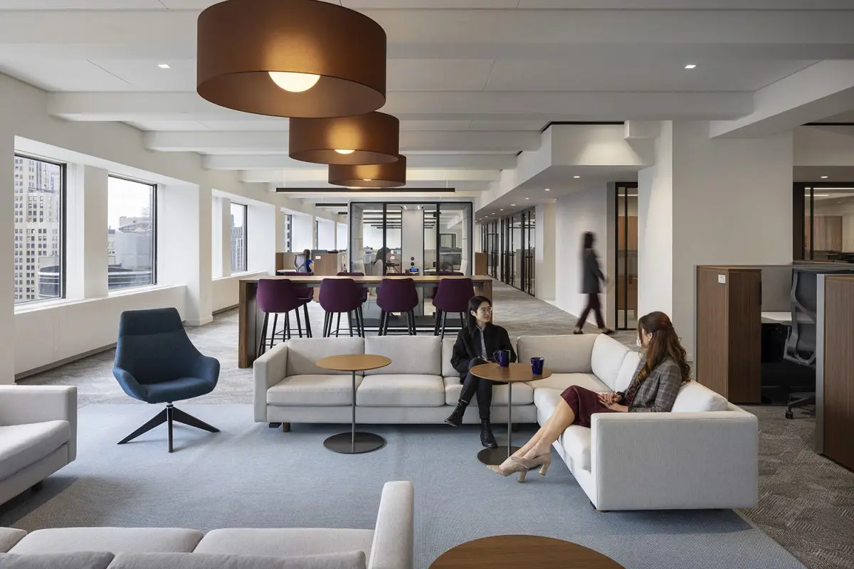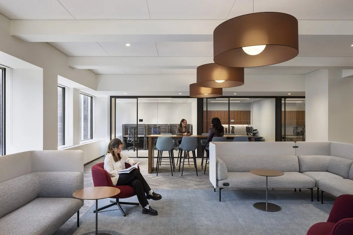 The re-imagination and remodel of Cohen & Steers’ 160,000 SF office at 1166 Avenue of the Americas transforms this four-floor workspace into a collaborative and talent-driven environment. A striking interconnecting staircase spans all four floors, featuring millwork paneling and custom lighting. Collaboration stations are integrated throughout, offering high-top work surfaces with advanced AV and connectivity, alongside casual lounge areas for relaxed meetings. A dedicated podcast room adds a creative space for content creation and communication. Designed with a classic and elegant style, the space is both sophisticated and functional. Achieving LEED Gold certification and a Fitwel 2 Star rating, this workplace prioritizes sustainability, wellness, and innovation.
