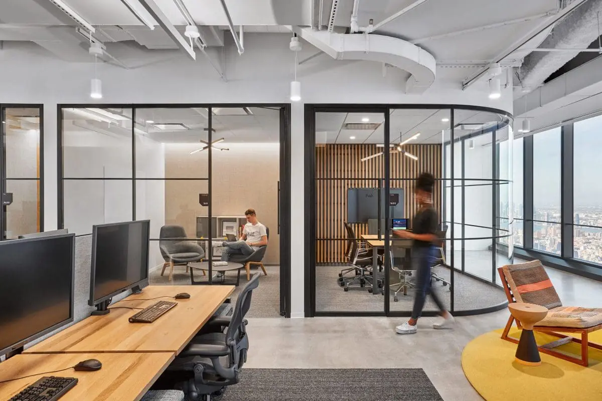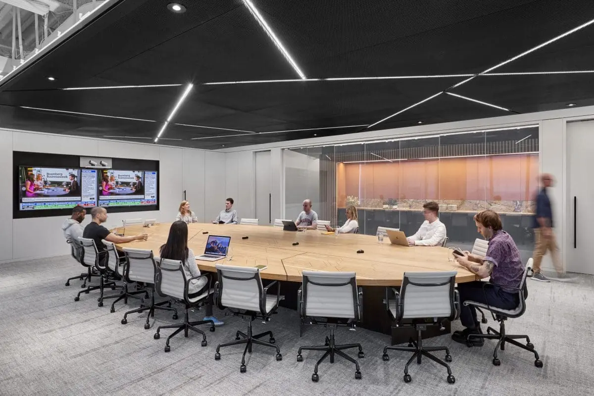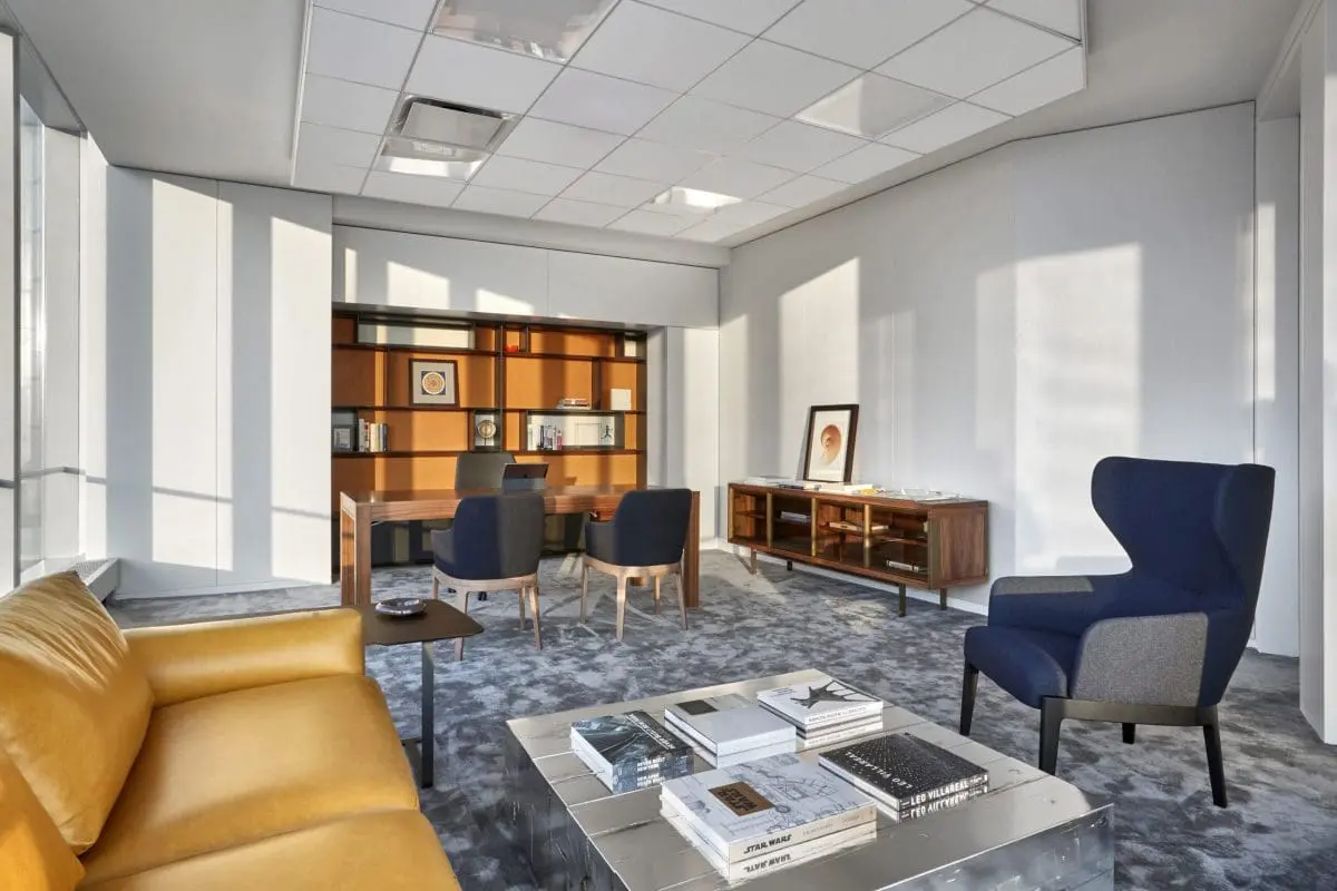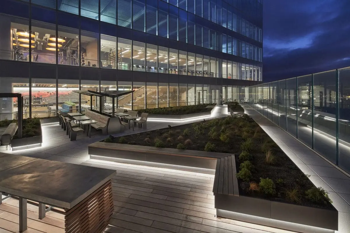 An iconic 5,000 square foot outdoor terrace boasts panoramic views of New York Harbor. The new high tech and efficient workspace was designed for HRT’s growing team. Highlights of the space include; a full kitchen with cooking facilities, bleacher style stairway seating, boardroom, IDF closets and VC rooms. After the success of the first project at 4 World Trade Center, J.T. Magen was brought back to build out 6 additional floors at 3 World Trade Center. This 211,000 SF office features a fitness center, game lounges, an open workspace setting, and a sizeable outdoor terrace with panoramic views of NYC-all encouraging employees to socialize.