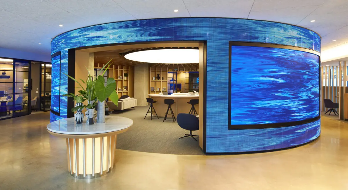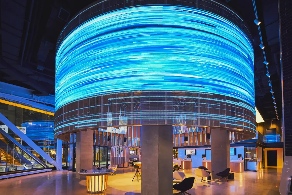 Situated in the buildings carved out, column-free corner on Madison Avenue, this new banking branch represents a significant addition to Chase’s portfolio, ranking among its largest in the U.S. This project exemplifies a modern banking experience that seamlessly integrates digital and physical interactions within a spacious two-story layout. Equipped with meeting suites and interactive hubs featuring the latest technology, the branch offers a comfortable and flexible environment for banking needs. Additionally, a mezzanine provides adaptable space for hosting events, while a prominent LED display at the core showcases the brand’s identity and can be seen from the street.