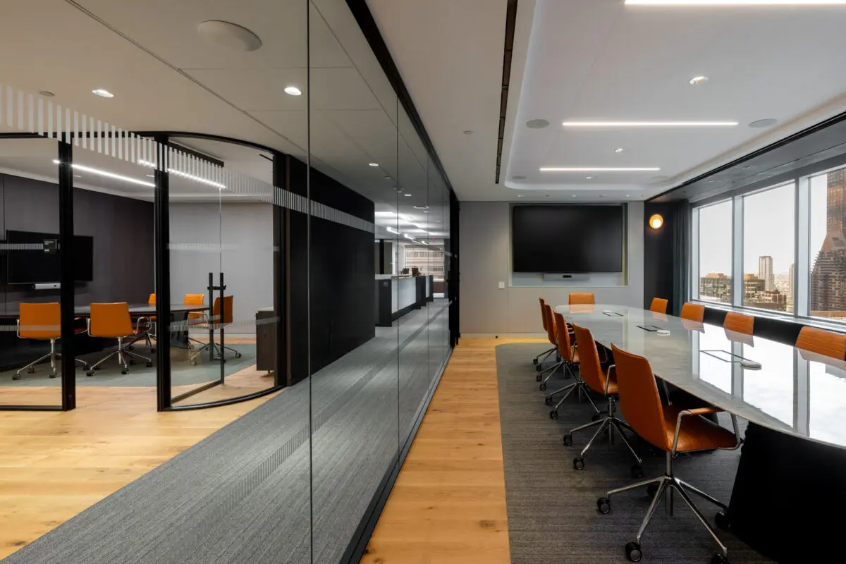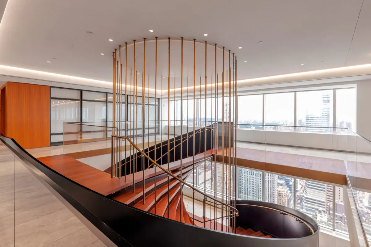 This extensive 600,000 square-foot construction project involves a comprehensive redevelopment and expansion, featuring a multi-phased restack of 18 practice floors and an extension from the 50th to the 51st floor for a state-of-the-art conference center. Central to the redesign is an impressive metal and wood double helix feature stair connecting the upper floors, enhancing both aesthetics and accessibility. The project includes new construction throughout the entire Kirkland & Ellis stack, with centrally located stairs on practice floors and a welcoming café/lounge area boasting a double-height ceiling. This transformation aims to create a dynamic, efficient, and visually striking workspace, integrating modern design elements to meet evolving needs and promote employee well-being.