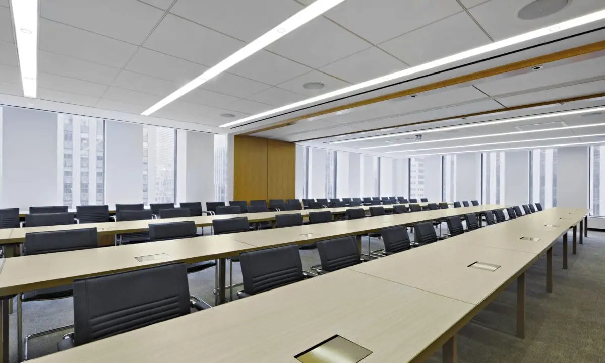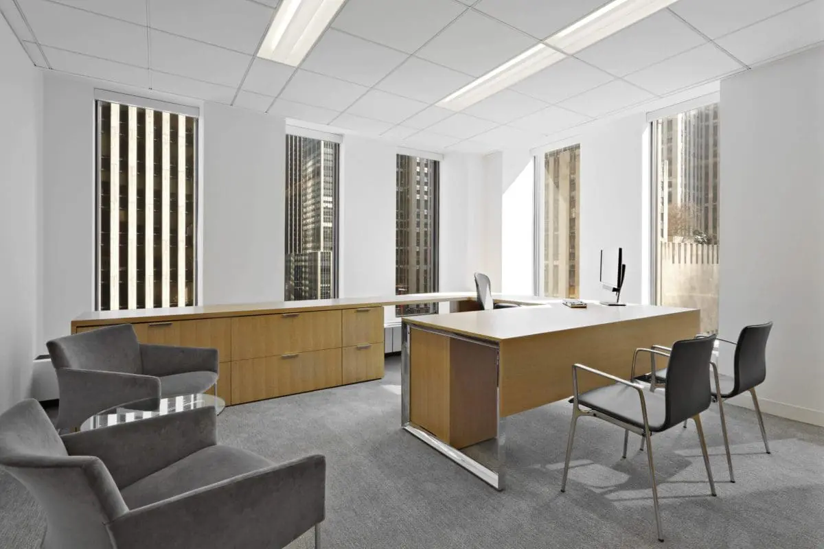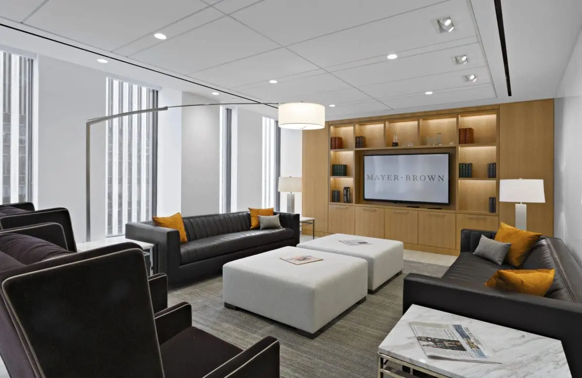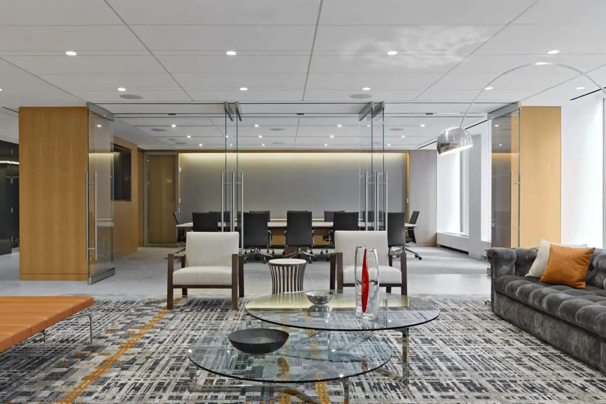This 258,000 square-foot fit-out for a global legal services firm, spanning five and a half floors, is situated in the iconic Rockefeller Center. The office features 30,000 square feet of conference space and large multi-purpose rooms with transitional furniture designed for versatility. Emphasizing a shift from traditional law firm office designs, the space promotes shared, collaborative environments for employees. Energy-saving initiatives are integrated into the design, reflecting a commitment to sustainability. The interior boasts warm tones, custom millwork, and a clean, modern design, creating an inviting and efficient workspace.