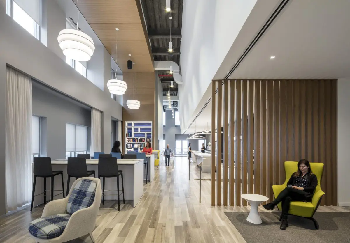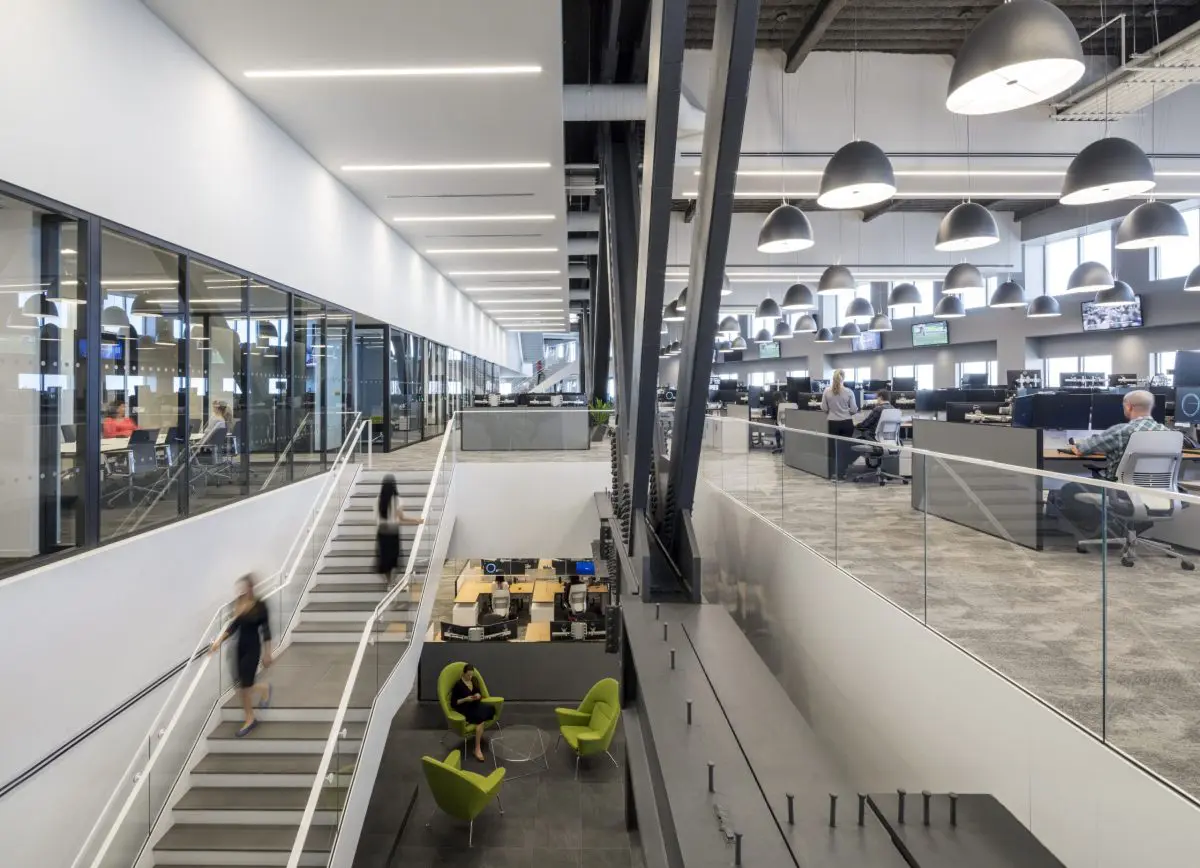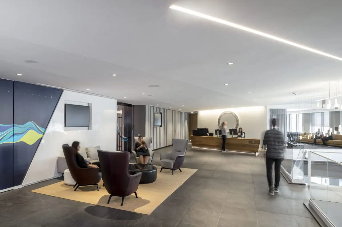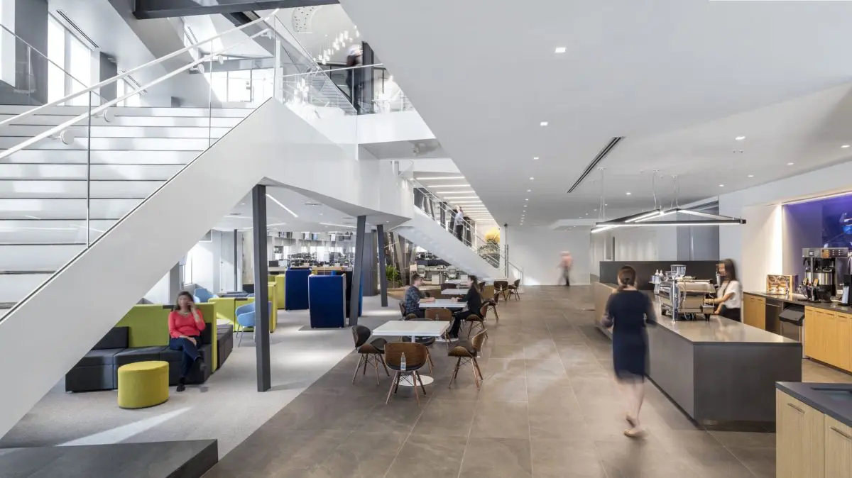 This 160,000 SF space features a state-of-the-art trading floor, flexible collaboration spaces, and a striking feature staircase. Custom lighting and bespoke millwork add a touch of sophistication to the office. Prioritizing employee well-being, this project has received a WELL Gold certification, boasting advanced air and water filtration systems throughout the floors.