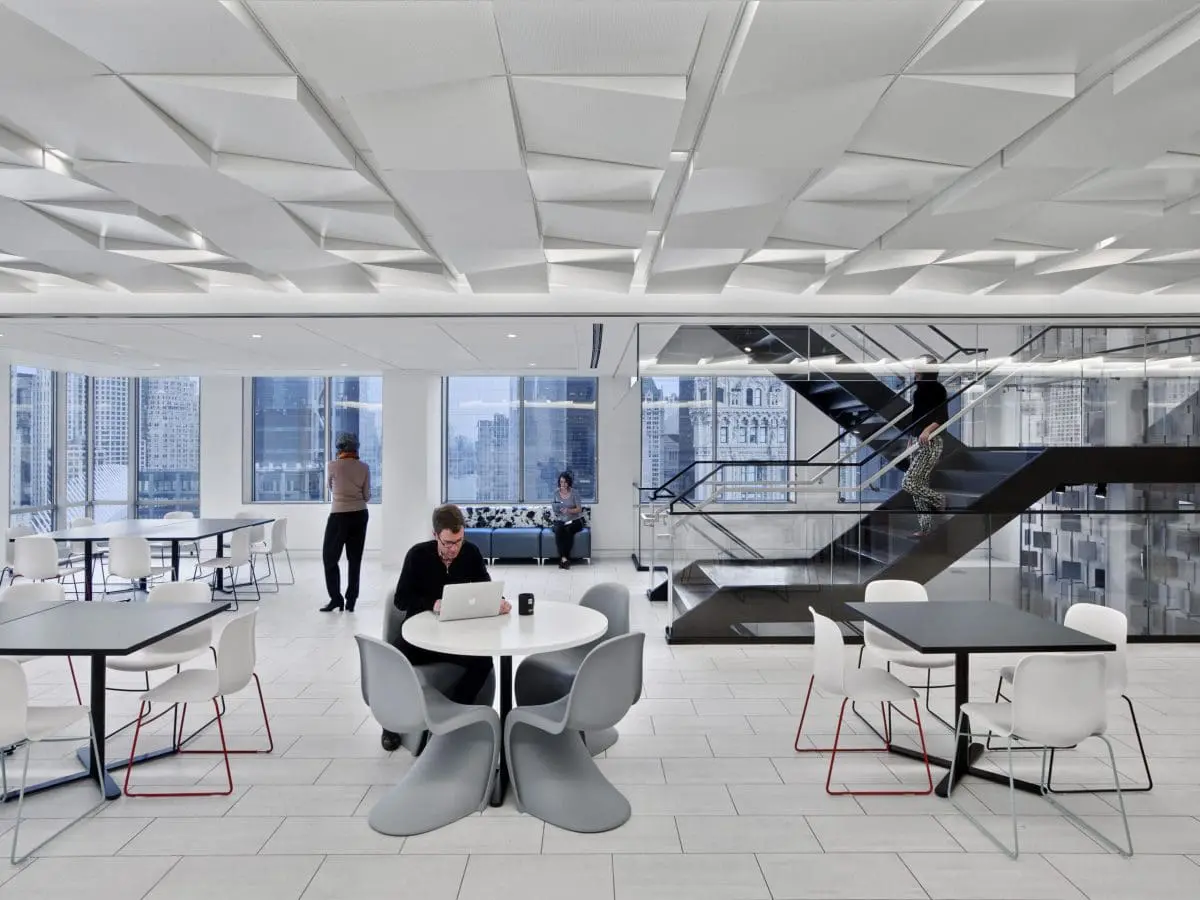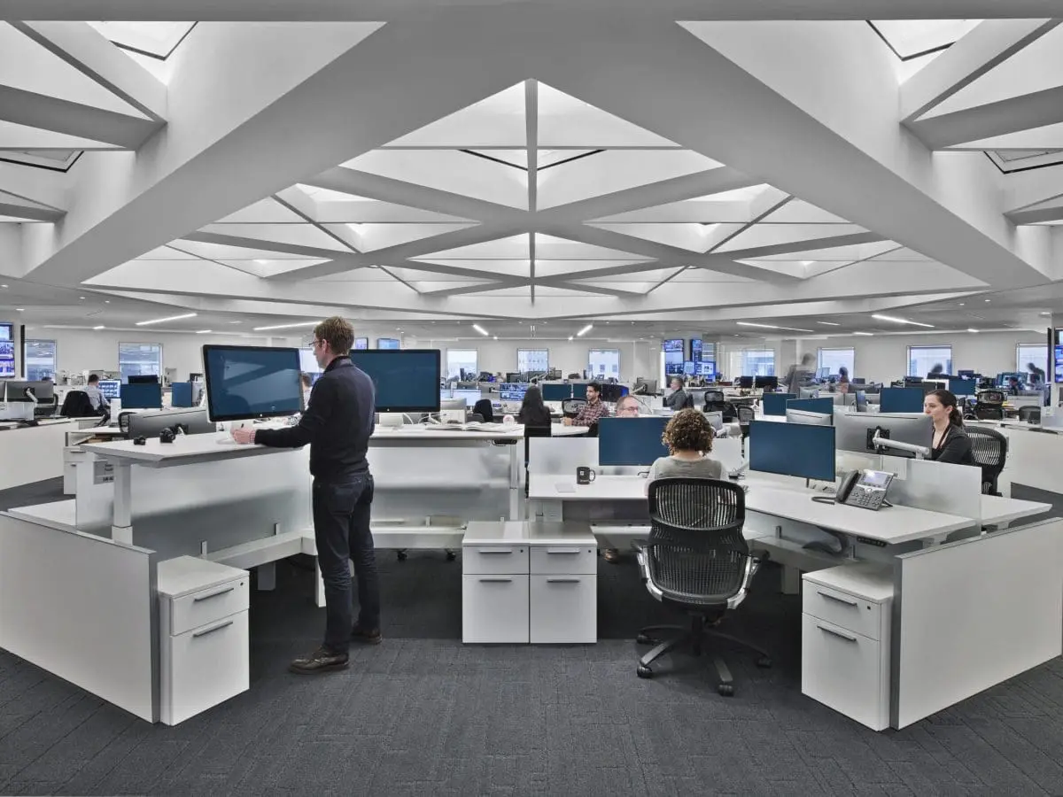 Accommodating 600 employees in a mix of private and open offices, the news agency’s new headquarters spans across 4 floors. Designed by TPG Architecture, the amenity-rich space showcases an interconnecting feature staircase, custom lighting and ceilings, as well as a monochromatic theme throughout. Additionally, the new HQ houses a fully functioning broadcast center and newsroom.